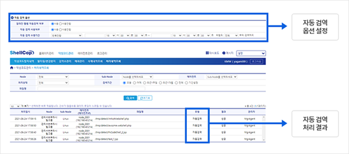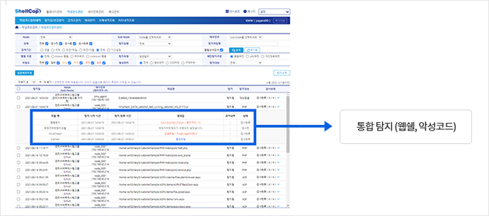 웹쉘 및 악성코드 탐지된 결과를 통합적으로 제공합니다.